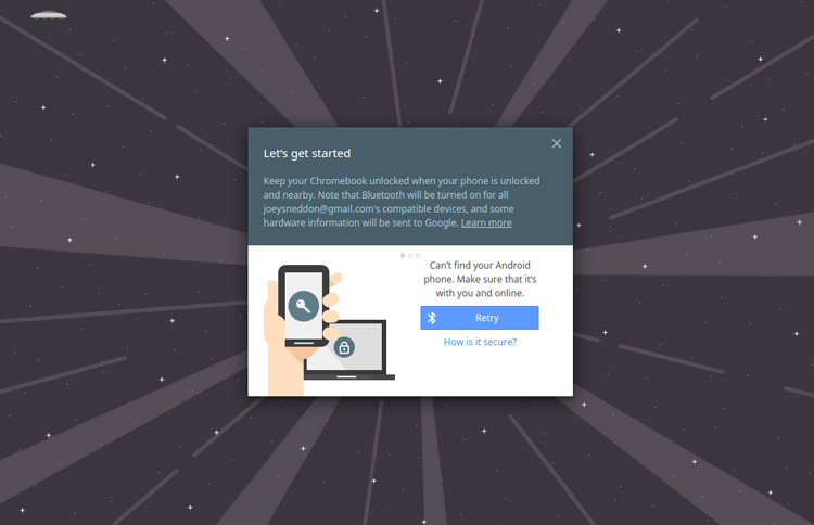 Tap the setup button to, well, get set up. When done, the next time you log out or boot up your Chromebook with your smartphone within range you’ll see one of two icons in the user pod.