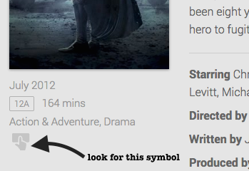 If you use the Chrome App to browse/purchase movies you’ll find the icon (or lack of it as the case may be) listed underneath the movie poster/cover image.